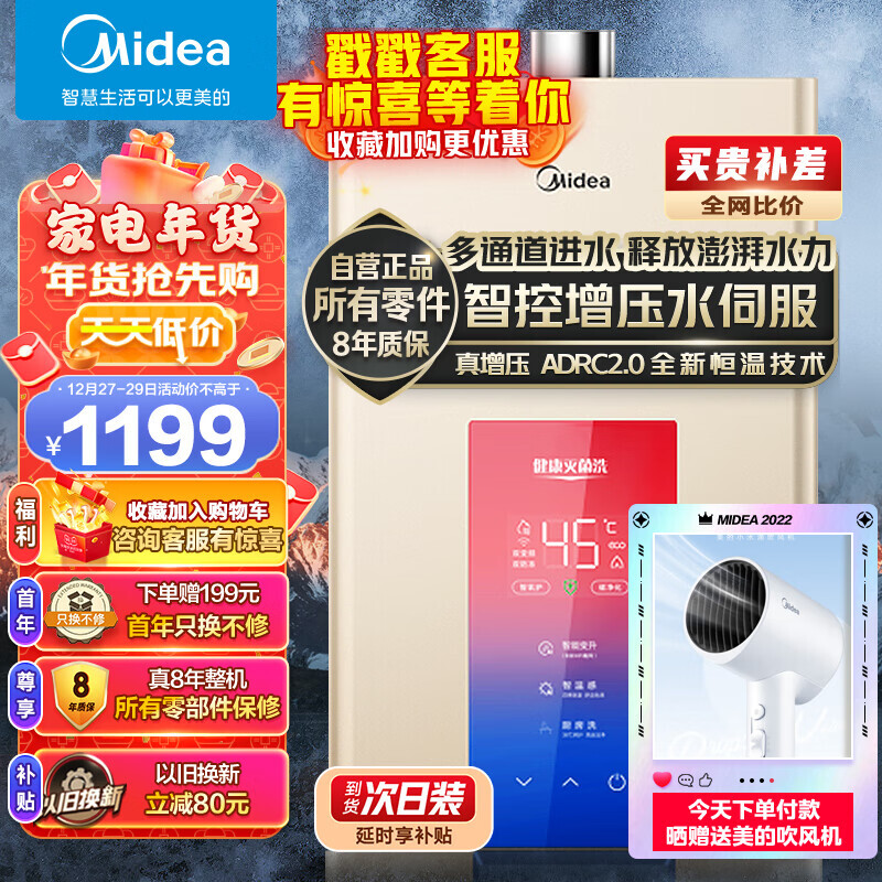 Midea 美的 JSQ25-MK3 燃气热水器 13L 1149元包邮(双重优惠)