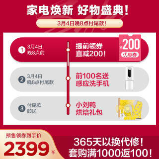 该商品目前京东售价2899元,预售支付定金20可抵320,领券满2599元减200元,下单实付2399元,近期低价,有需要的可以入手。