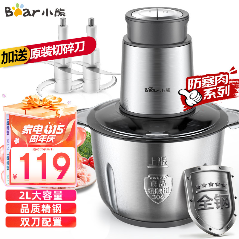 Bear 小熊 QSJ-B03L5 绞肉机 2L 灰色 89元包邮(需用券)