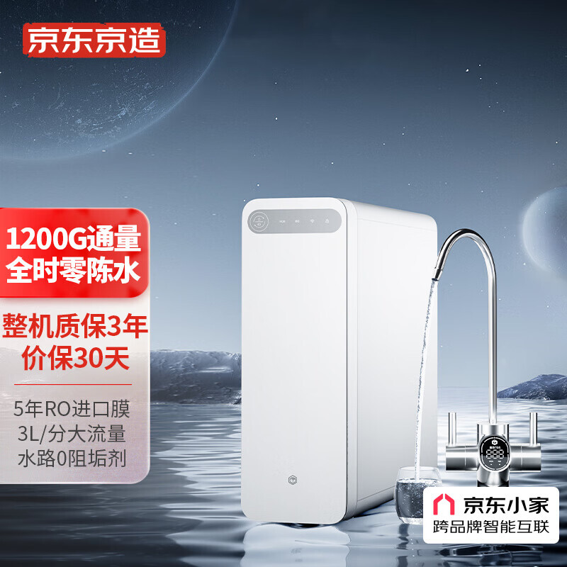 京东京造 JZ-JS1200G RO反渗透纯水机 4000L 1999元包邮