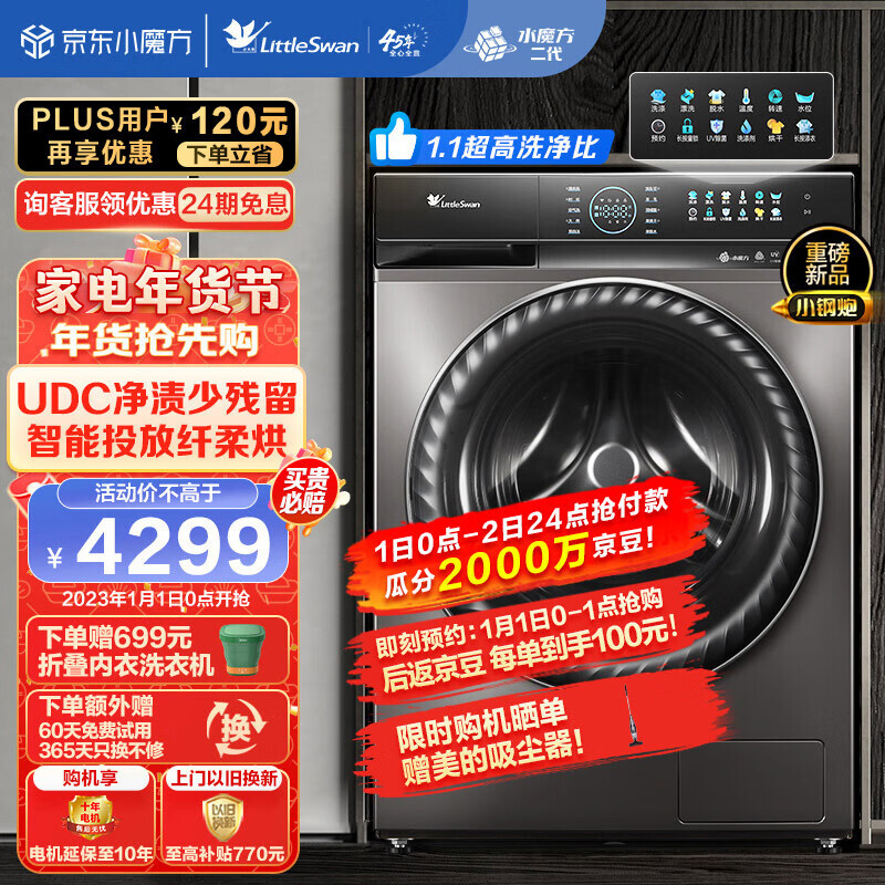 PLUS会员:小天鹅 水魔方系列 TD100UTEC 洗烘一体机 10kg 3779元包邮(下单赠送100元京豆,需用券)