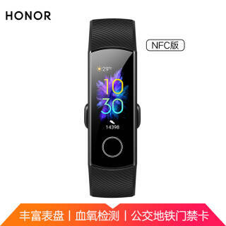 HONOR 荣耀 智能手环 5 NFC版 黑色 陨石黑硅胶表带(NFC、血氧) 199元