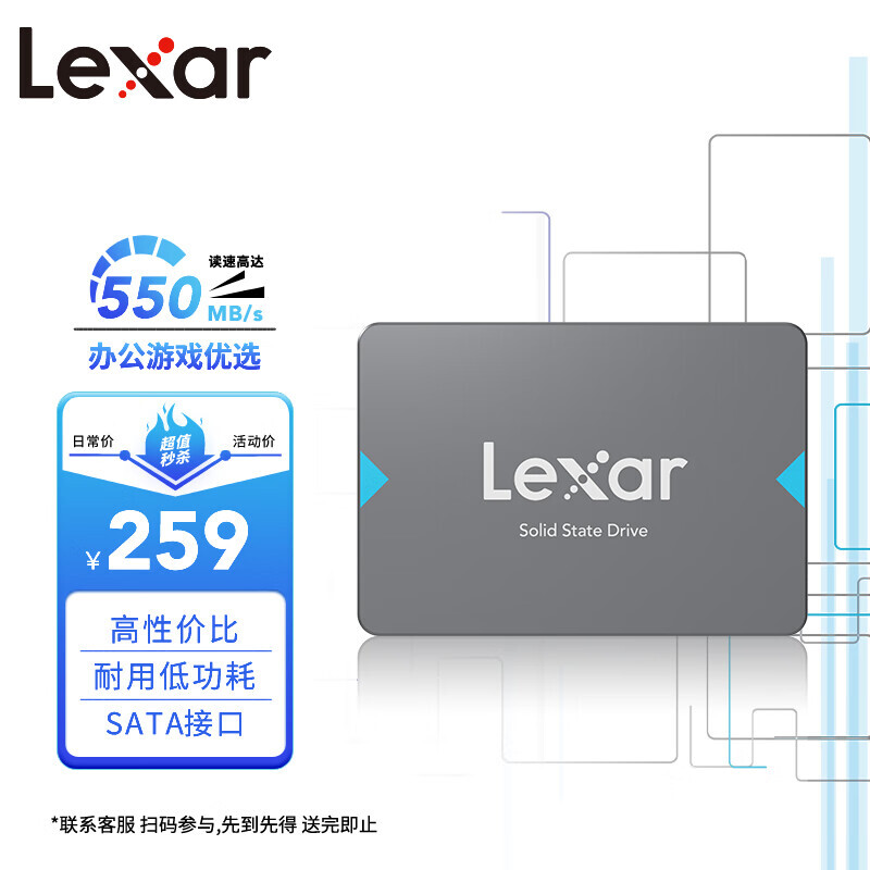 Lexar 雷克沙 NQ100 SATA3.0 固态硬盘 480GB 249元
