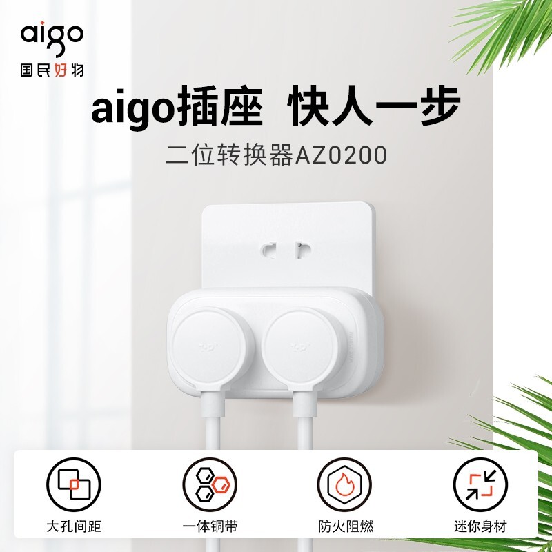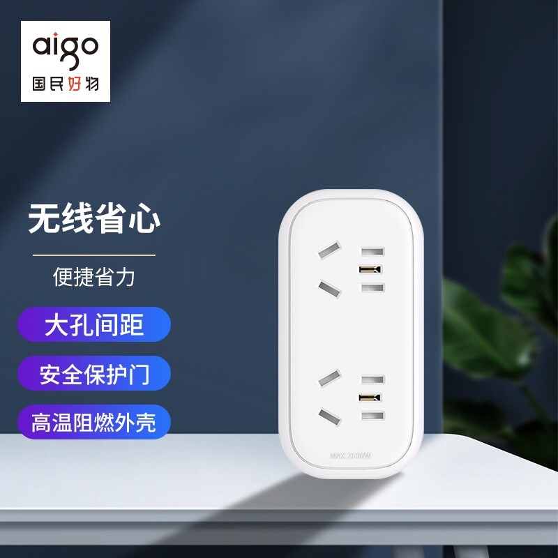 aigo 爱国者 一转二多插座转换器/转换插头/无线转换插座/电源转换器/墙面扩展插头 2位 17.01元