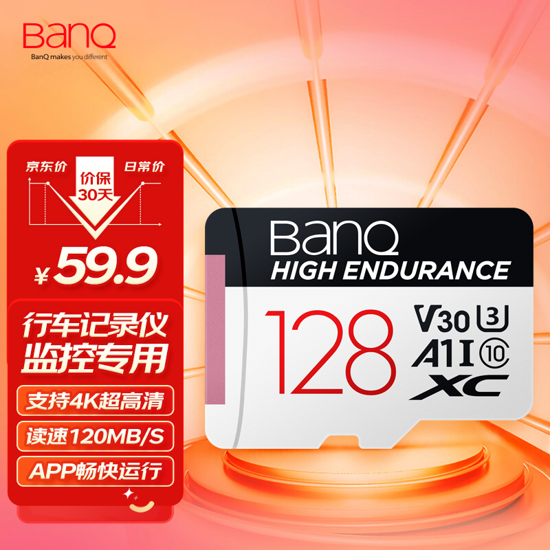 BanQ 128GB TF(MicroSD)存储卡 A1 U3 V30 4K 行车记录仪&安防监控专用内 45.8元