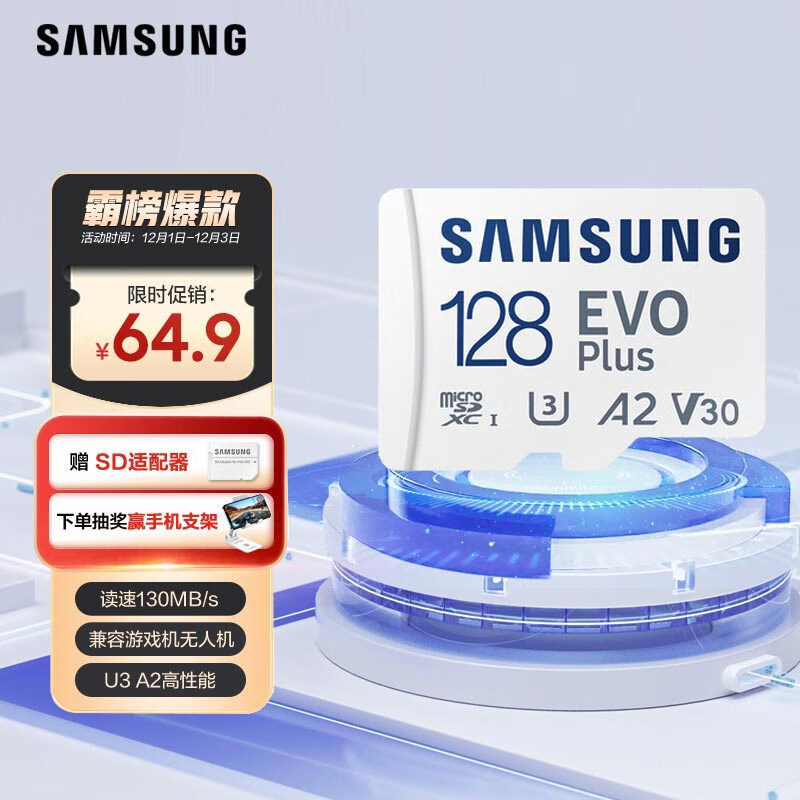 SAMSUNG 三星 EVO Plus系列 Micro-SD存储卡 128GB 64.9元