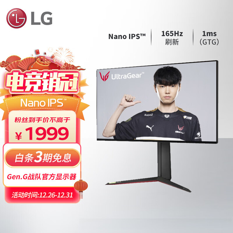 LG 乐金 27GP83B 27英寸NanoIPS显示器(2560×1440、165Hz、98%P3、HDR10) 1999元