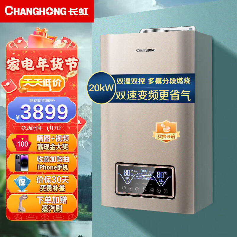 CHANGHONG 长虹 燃气壁挂炉家用供暖淋浴双温双控APP智控多段式燃烧锅炉暖气片地 3499元(需用券)