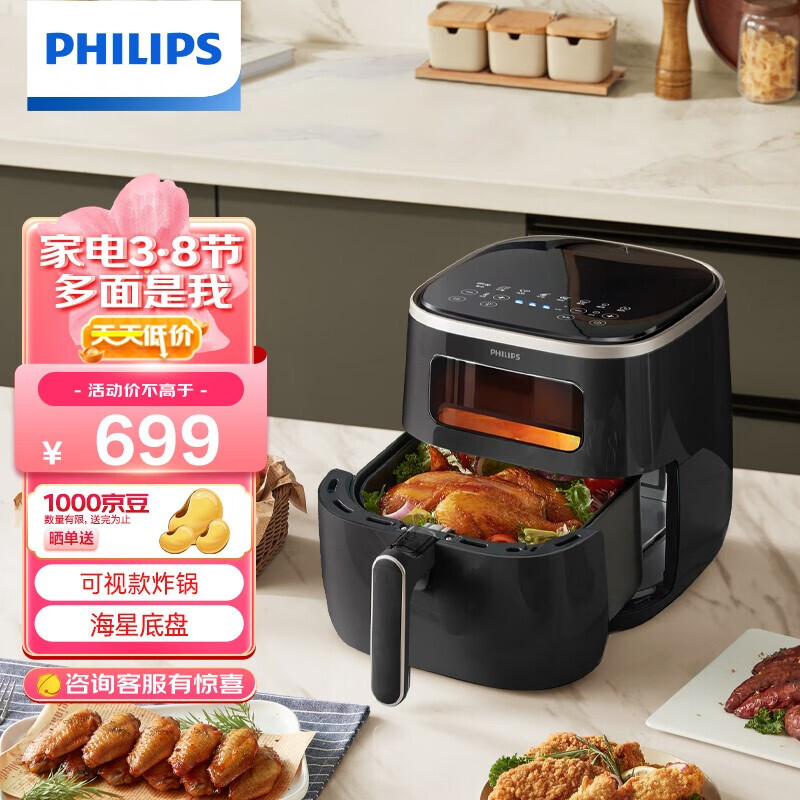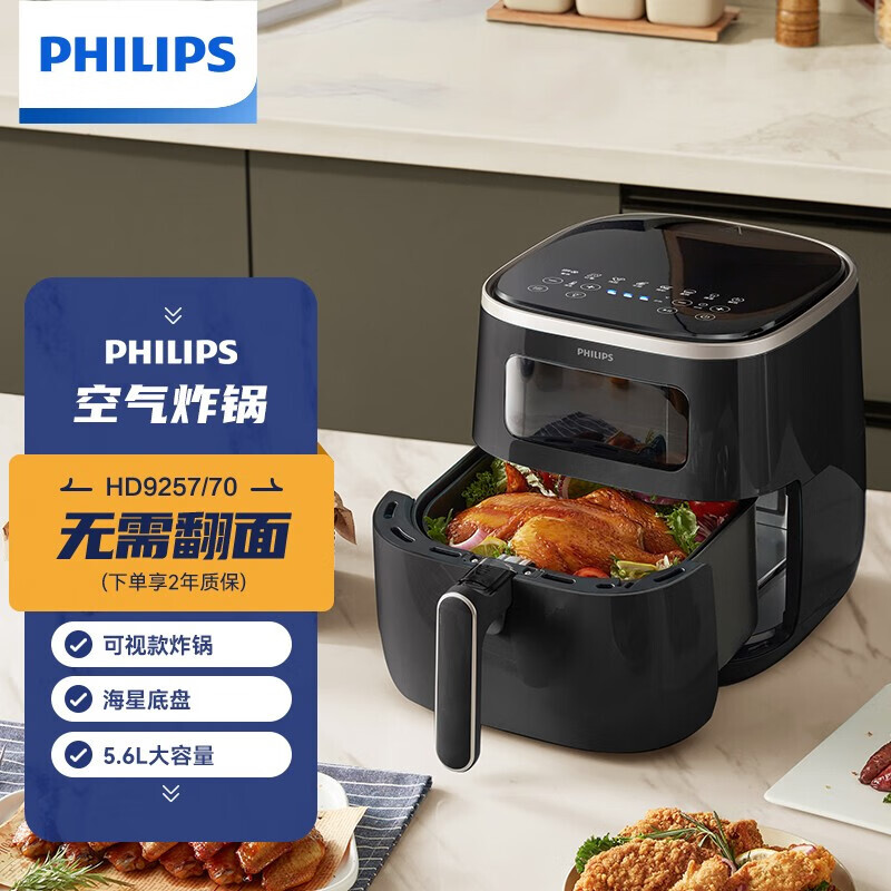 PLUS会员:PHILIPS 飞利浦 HD9257/80 空气炸锅 5.6L 经典黑 629元包邮(双重优惠)