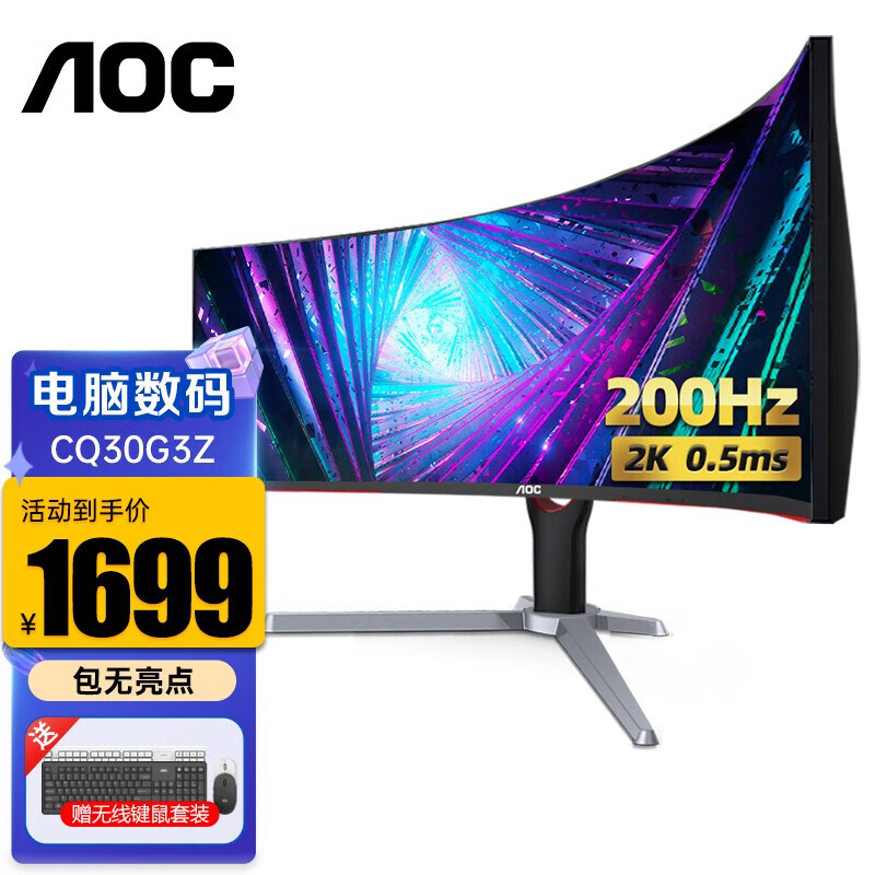 AOC 冠捷 30英寸带鱼屏200Hz准2k曲面屏旋转升降21:9电竞宽屏游戏电脑显示器CQ30 1699元