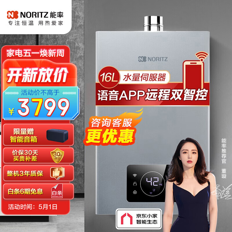NORITZ 能率 GQ-16V36AFEX(JSQ31-V36) 燃气热水器16升 3799元