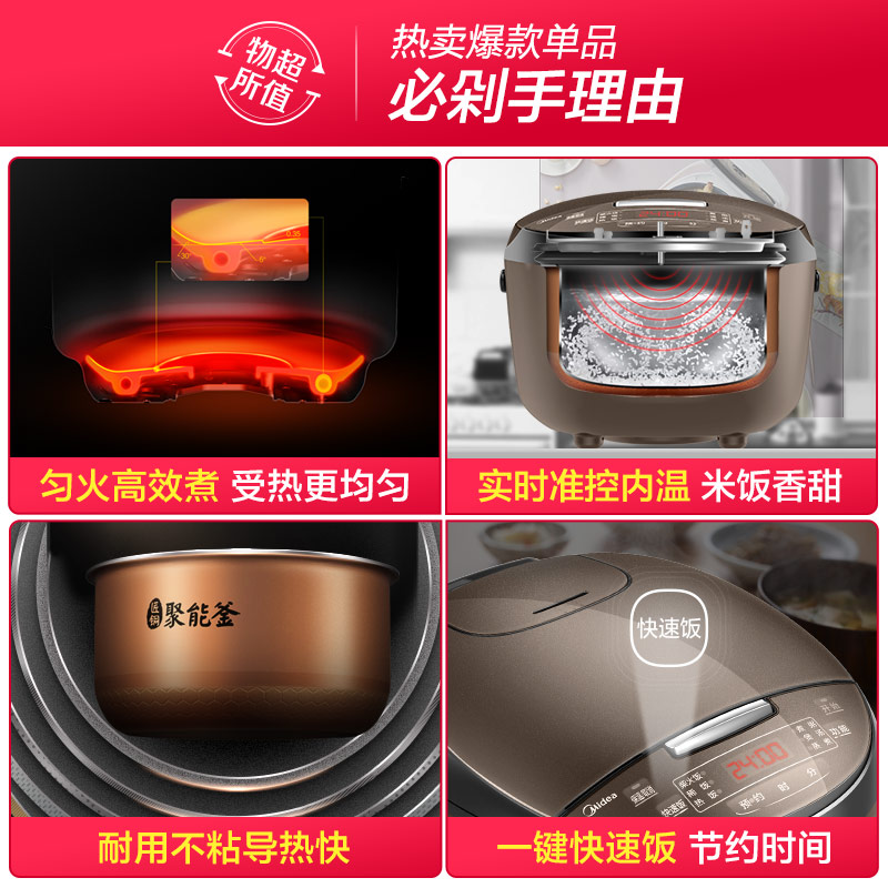 Midea 美的 MB-FB40Simple111 电饭煲 4L 深咖色 169.9元(需用券)