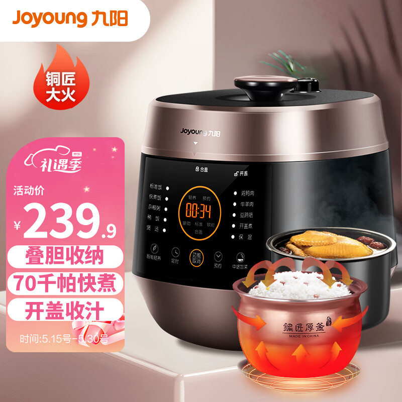 Joyoung 九阳 Y-50C82 电压力锅 5L 239.9元