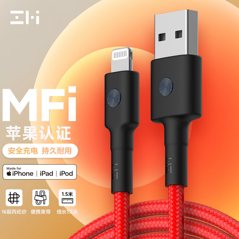 ZMI 紫米 AL853 MFi认证 苹果数据线 1.5m 58.9元
