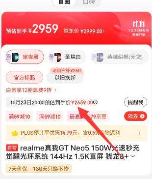 双十一预售:realme真我GT Neo5 16GB+1TB 宙夜黑 5G手机 2659.00元(23号晚20点)