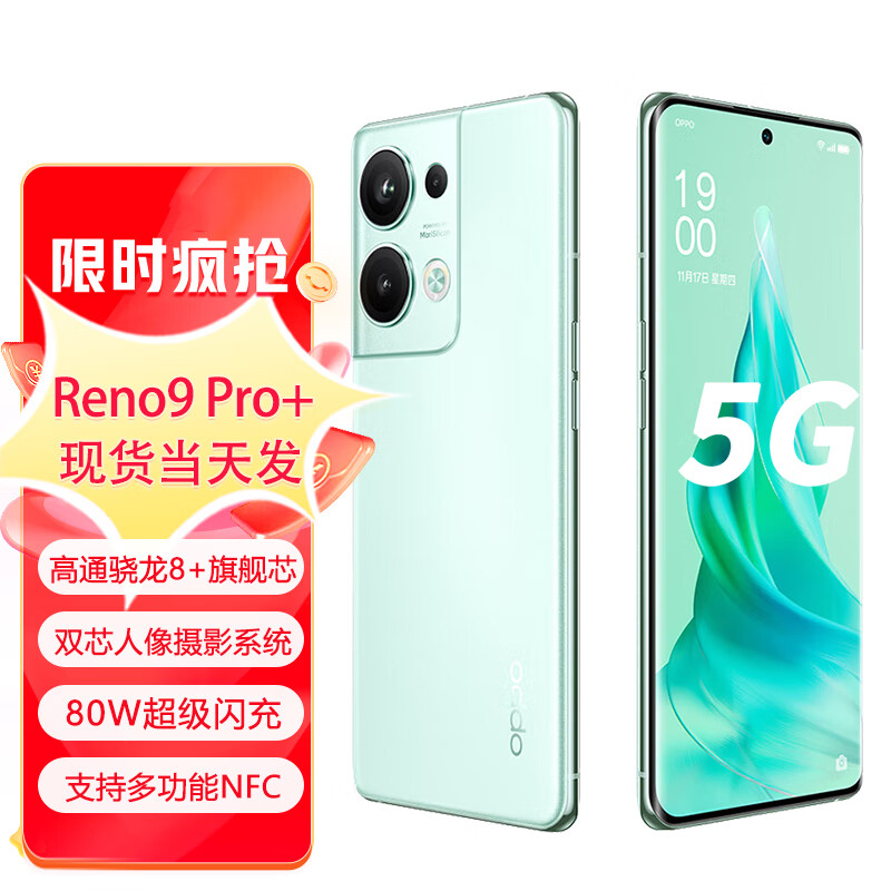 限移动端、京东百亿补贴:OPPO Reno9系列 OLED超清曲面屏 oppo reno9 5G手机 2770元