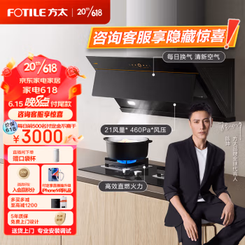 再降价、618预售:FOTILE 方太 风魔方系列 JCD7+HT8BE.S 侧吸式烟灶套装 天然气 3000元包邮(需付定金)
