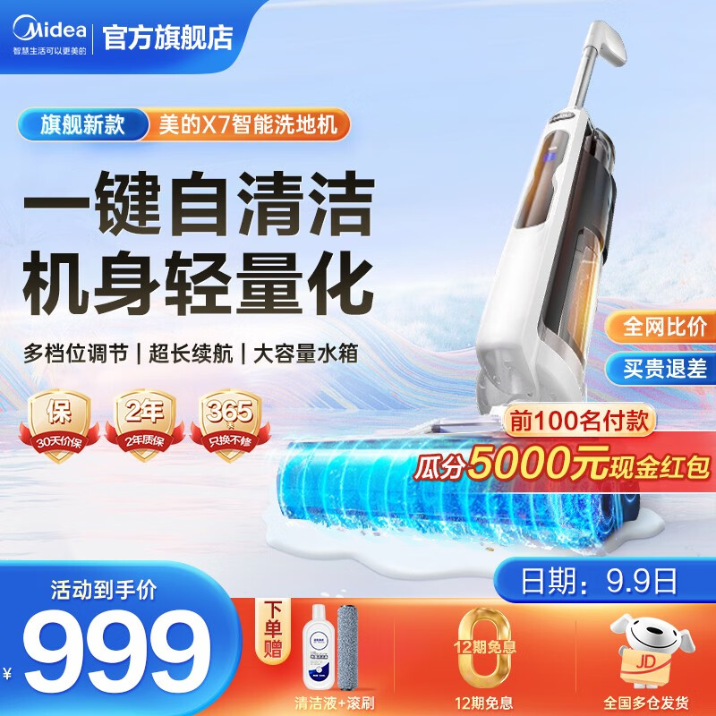 京东PLUS:Midea 美的 X7 无线洗地机 869元包邮(需凑单,双重优惠)