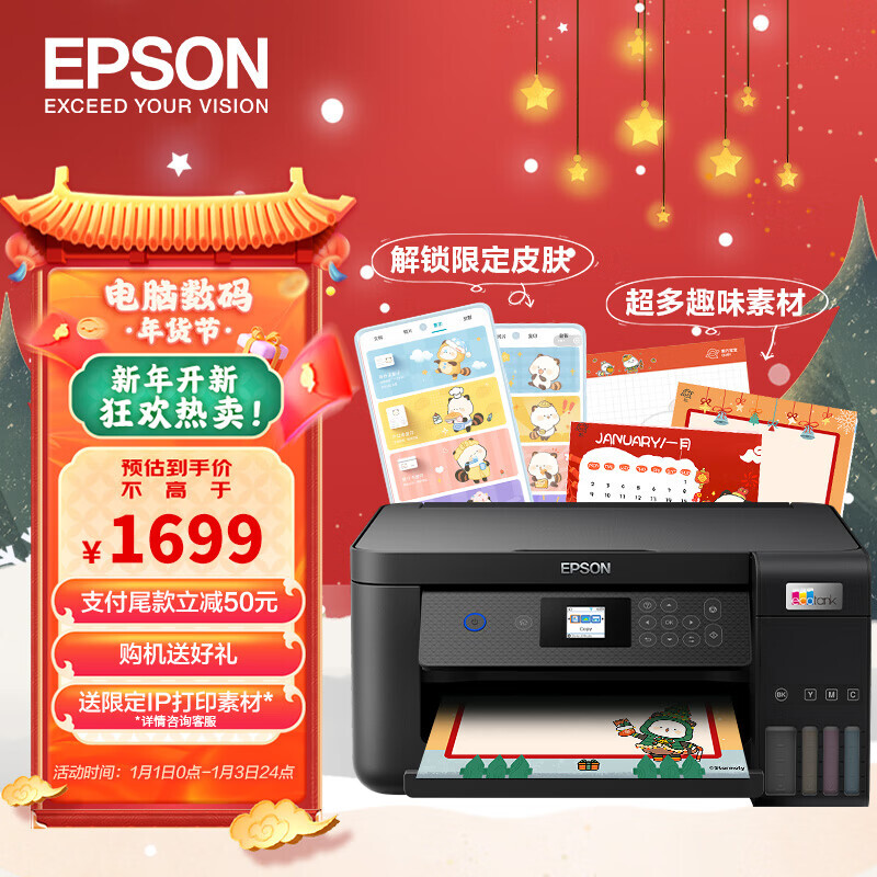 PLUS会员:EPSON 爱普生 L4268 墨仓式彩色无线多功能一体机 黑色 1649元包邮(双重优惠)