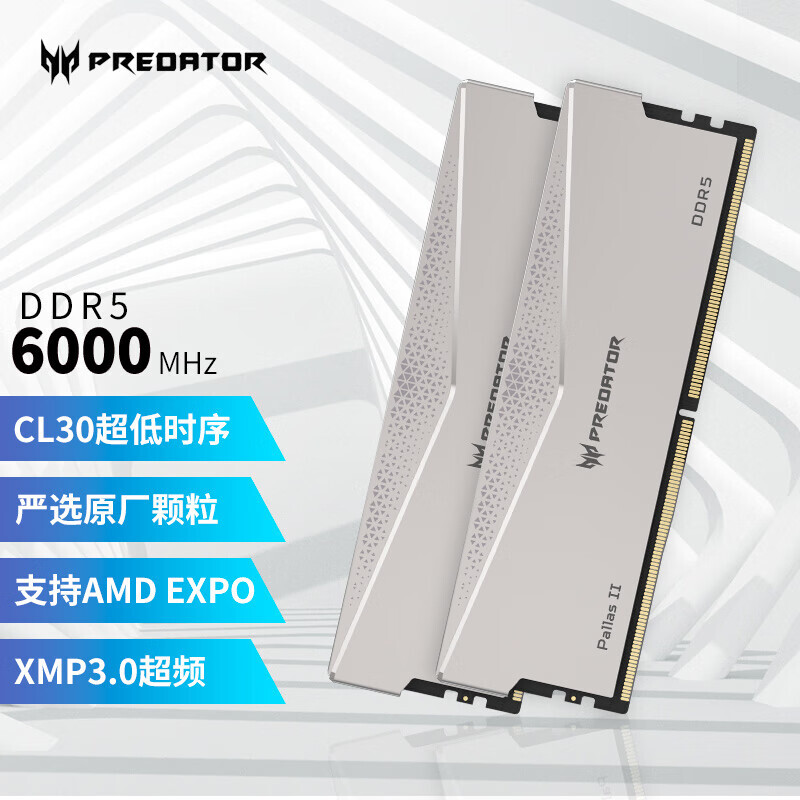 PREDATOR 宏碁掠夺者 Pallas II 凌霜系列 台式机内存条 DDR5 6000MHz 32GB(16GB2) 969元包邮(需用券)