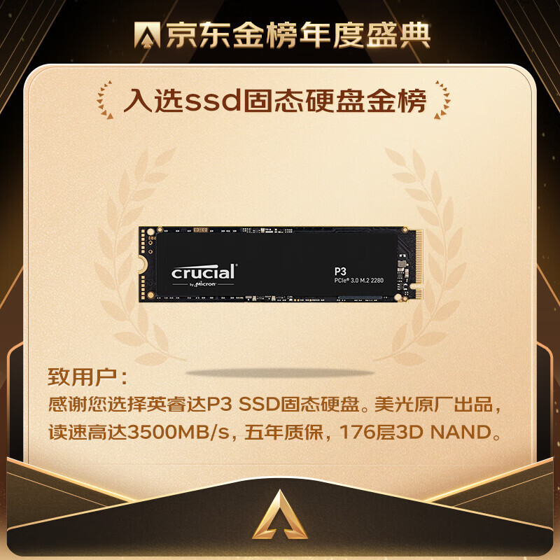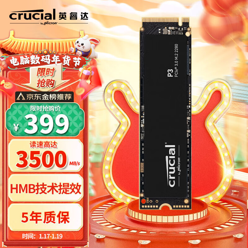 Crucial 英睿达 P3系列 NVMe M.2 固态硬盘 1TB 369元包邮(需用券)