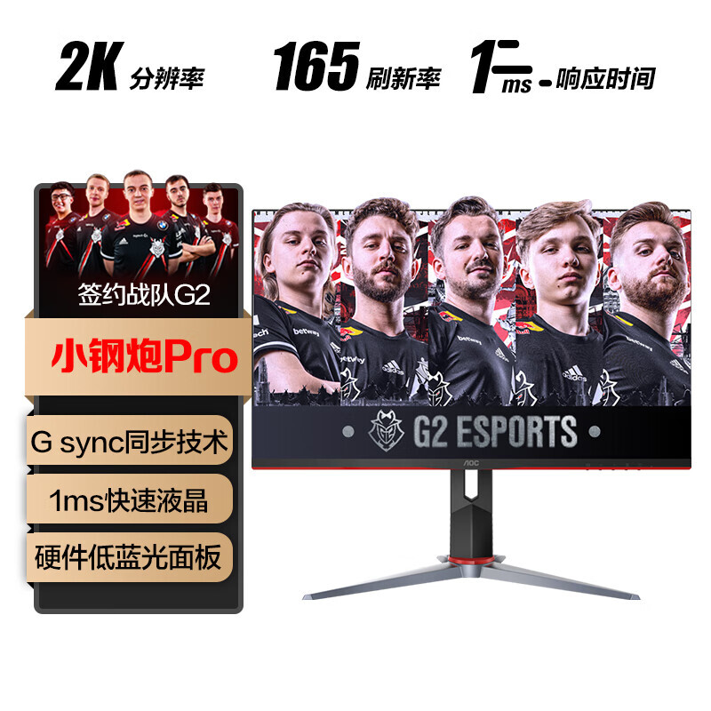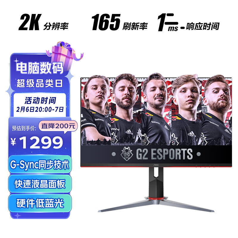 AOC 冠捷 Q24G2 23.8英寸IPS显示器(2560x1440、165Hz、1ms) 1299元包邮(满减)