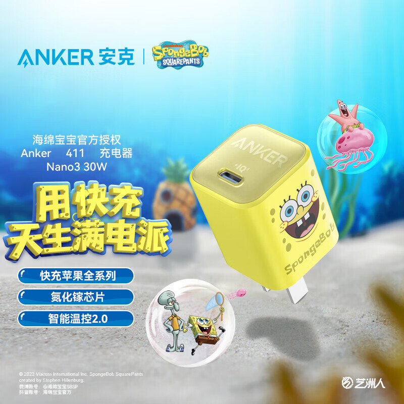 Anker 安克 A2147 氮化镓充电器 30W 海绵宝宝 119元(需用券)