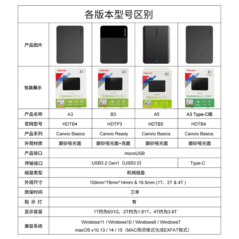 TOSHIBA 东芝 新小黑系列 A3 USB3.0 移动硬盘 4TB 579元包邮(满减)