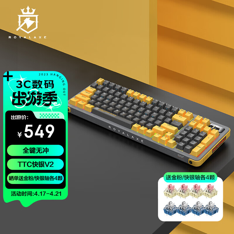 Royal Axe 御斧 Y98三模机械键盘 TTC快银轴V2 98键 蒸汽朋克 374.4元