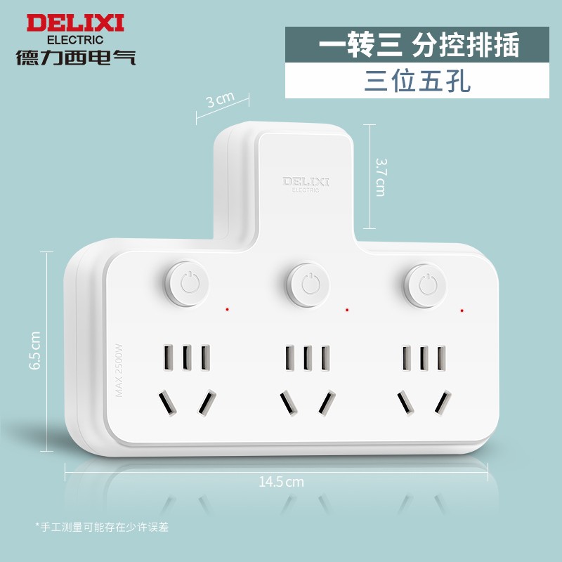 DELIXI 德力西 品字形排插 分控一转三 19.9元包邮(需用券)