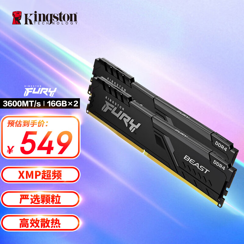 Kingston 金士顿 Fury系列 DDR4 3600MHz内存 32GB 16GB2 549元
