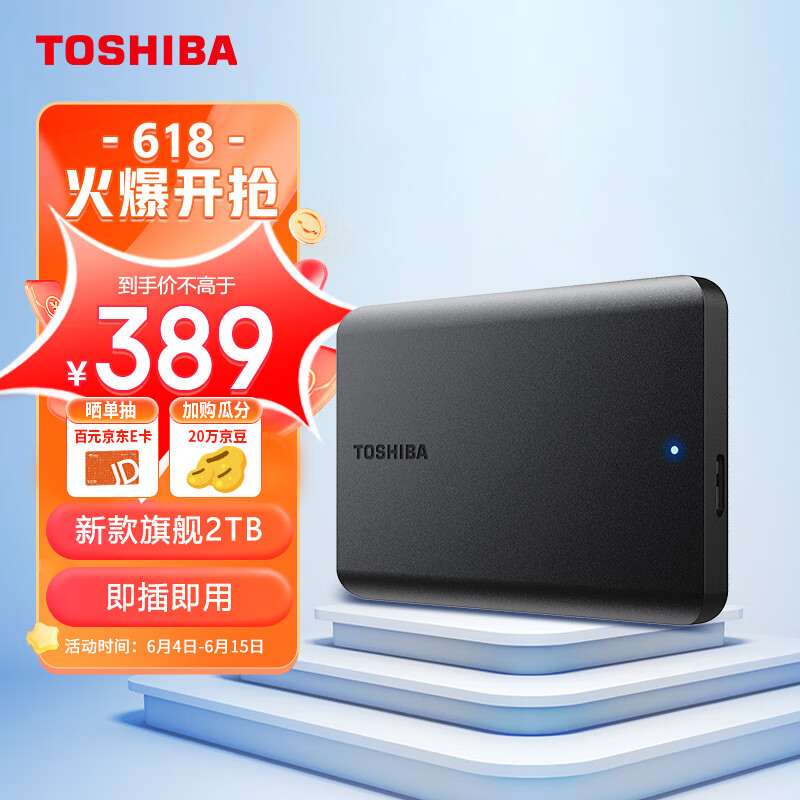 TOSHIBA 东芝 新小黑A5系列 2.5英寸 USB3.2移动硬盘 2TB 368元(需用券)