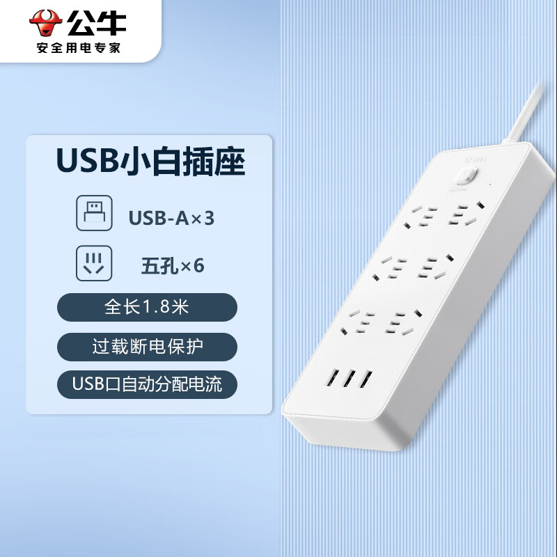 BULL 公牛 新国标公牛小白USB插座 GNV-UUN153 3usb接口 70元