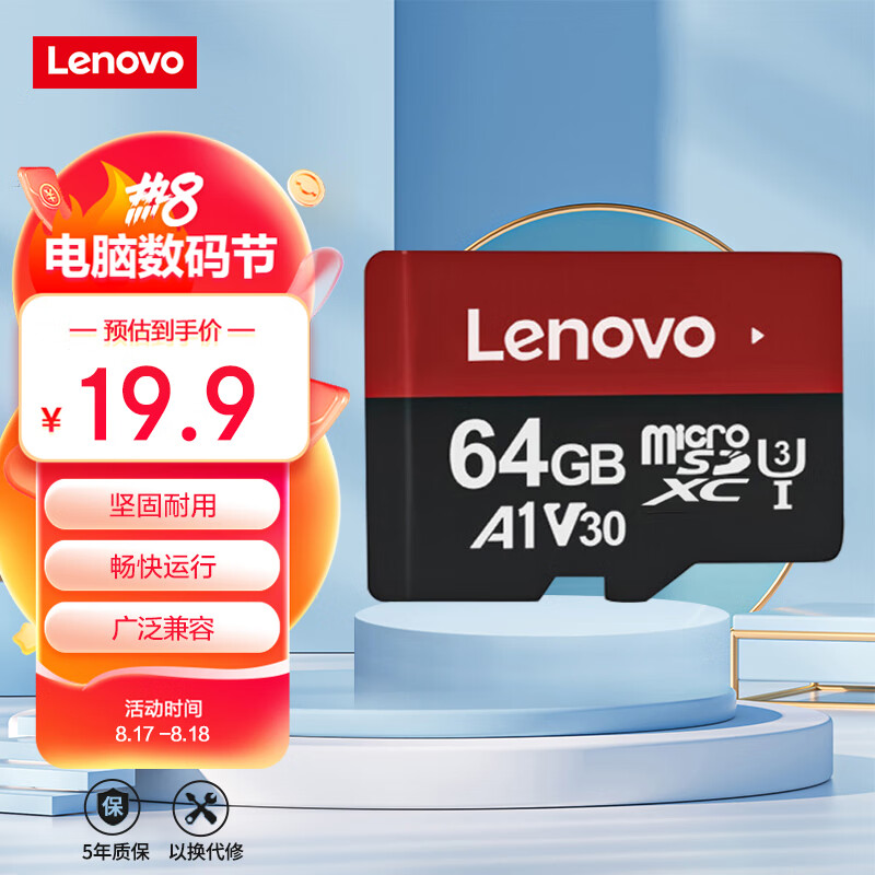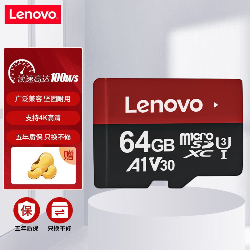 Lenovo 联想 T1 Micro-SD存储卡 64GB(UHS-I、V30、U3、A1) 19.9元