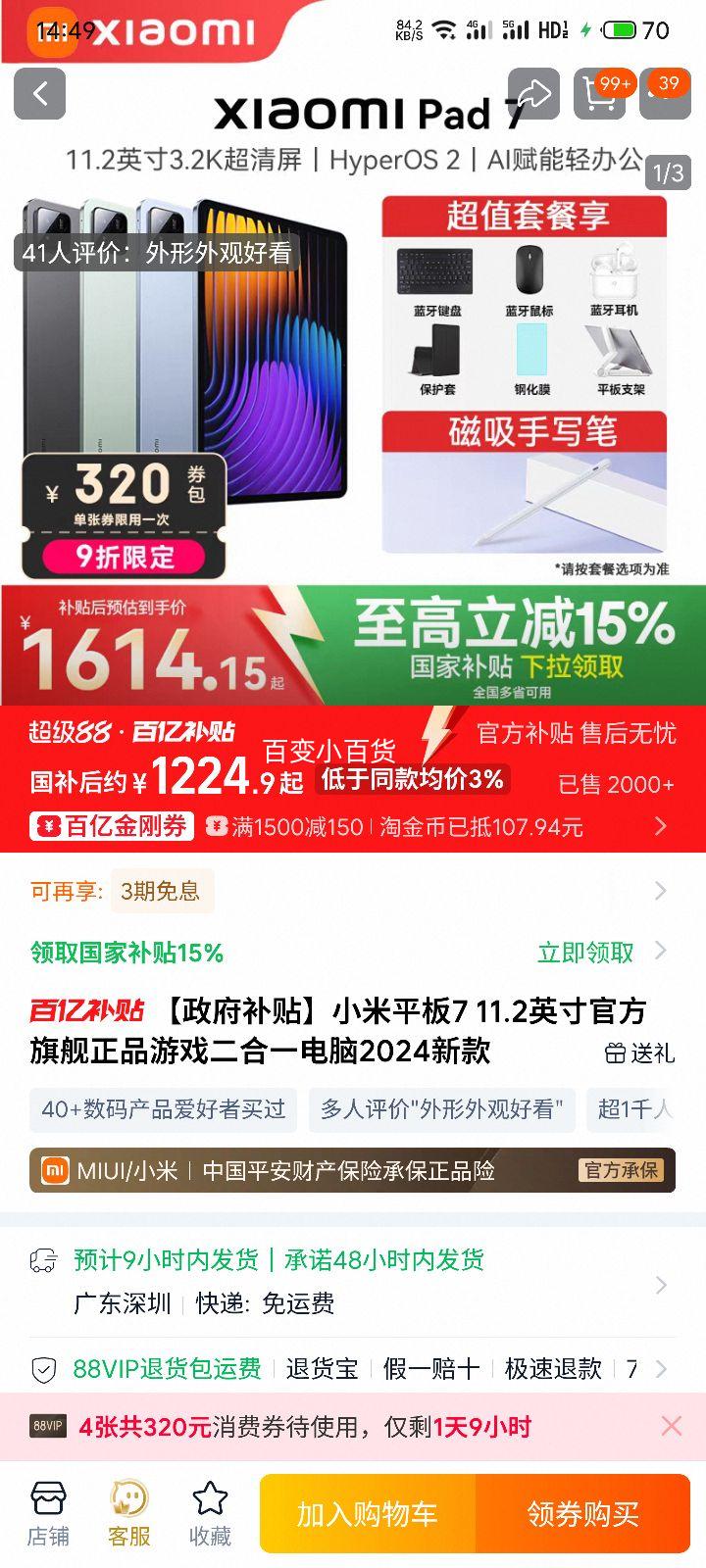 小米平板7 11.2英寸官方旗舰正品游戏二合一电脑2024新款 8+128 1224.9元(淘金币界面下单)+107.94元淘金币