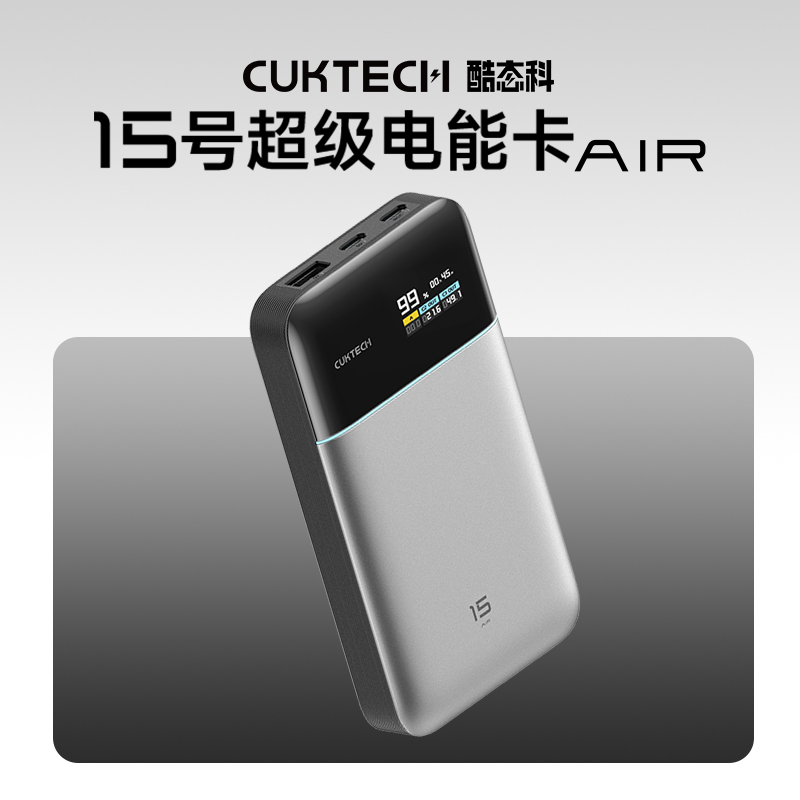 酷态科 15号超级电能卡AIR氮化镓100W超轻便携移动电源1W5毫安适用于小米15苹果16Pro 196.97元