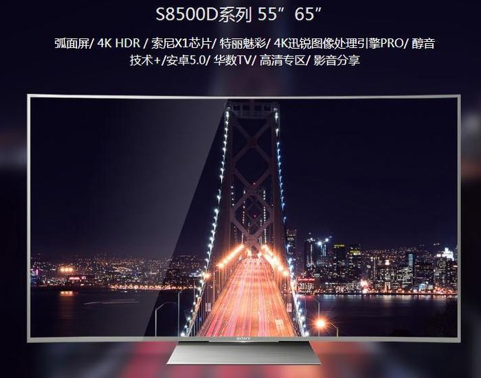 特丽魅彩!SONY 索尼 KD-65S8500D 65英寸 4K曲面液晶电视 包邮 10599元