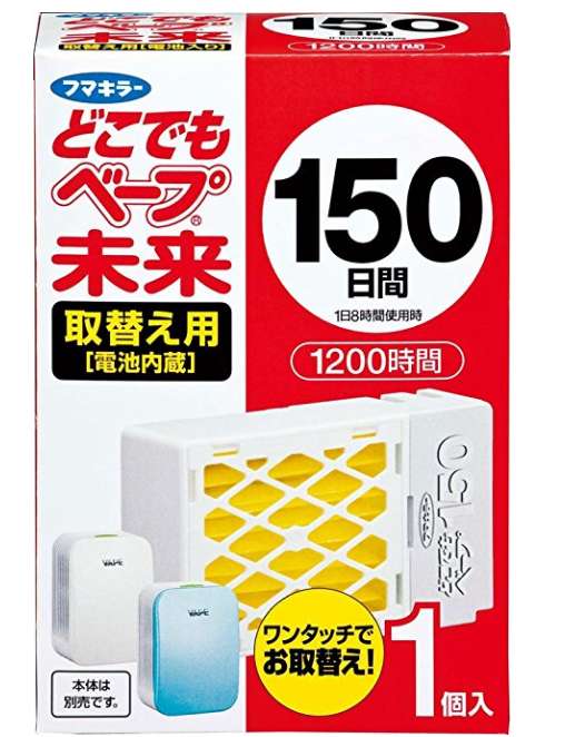 日本 VAPE 电子驱蚊器 替换芯,药和电池一体化设计,不用插电移动,自由自在,而且超静音、超方便,无异味,安全无毒,持久有效,初生婴儿亦可放心使用,有了这种实用的电池型驱蚊器,各种害虫都会躲的远远的;每天使用8小时,可以使用150天,经济又实惠,不使用的时候请关闭开关,以免浪费药品。