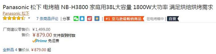 目前价格降至879元,主流B2C最低,入手好价。同款京东自营1199元,差价大。Panasonic 松下 NB-H3800 38L 电烤箱,采用镀铝内胆,配有上下双M型热管,相当于8热管,比常见的6热管加热更均匀,同时支持独立控温。带有旋转烤叉,配合热风对流,烧烤更加均匀。