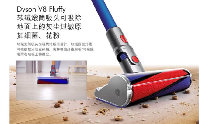 这款dyson戴森V8 FLUFFY手持吸尘器,无绳设计,轻松操作,轻巧设计,可以迅速将长柄转化至手持模式,便于清洁高处,低处及难以触及的部位;吸力强劲,有效清洁各种灰尘和尘螨;适合中国木地板家庭,大小残屑微尘一次吸尽!吸力更强劲,运行时间高达40分钟!