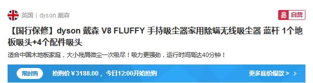 dyson戴森V8 FLUFFY手持吸尘器 限时好价包邮含税 3188元