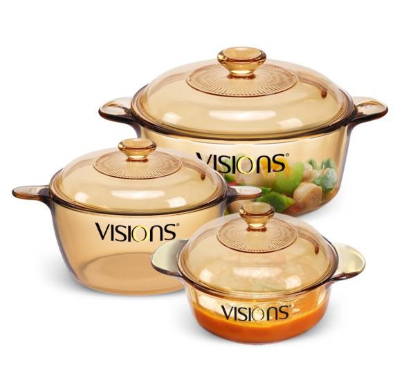 这款VISIONS康宁0.8L+1.5L+2.25L晶彩透明锅三件套,锅身产地法国,锅盖产地中国,三件套更优惠哦!透明锅身让烹饪过程一目了然,煎、炸、