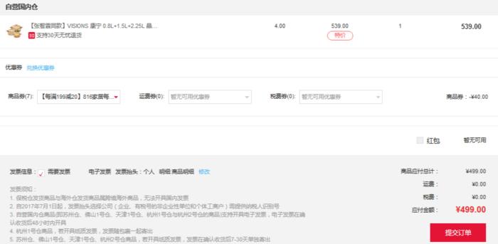 考拉海购816放心购物节优惠活动期间,这款VISIONS康宁0.8L+1.5L+2.25L晶彩透明锅三件套,价格十分不错,有喜欢的可以考虑下单!目前考拉海购539元包邮含税,使用商城816活动优惠券(满499-40),下单使用后立减,实际到手价格499元,赏心悦目,健康煮艺!原价999元,之前价格都在529元以上!