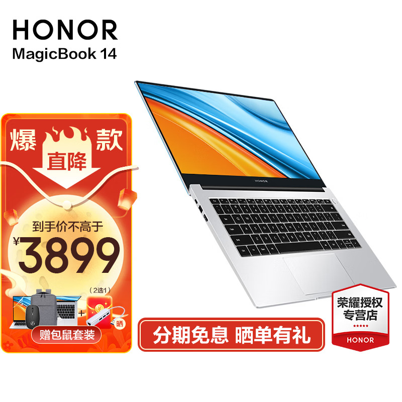 HONOR 荣耀 MagicBook14 14英寸笔记本电脑(R7-5700U、16GB、512GB SSD) 3858元