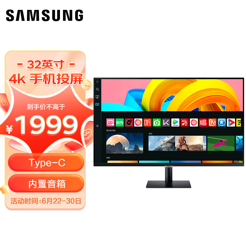SAMSUNG 三星 S32AM700PC 32英寸VA显示器(38402160) 1568元(需用券)
