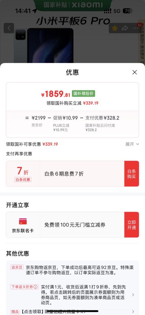 PLUS会员:MI/小米 6Pro 平板电脑 144Hz高刷护眼 11英寸 远山蓝 12+256GB 1859.81元
