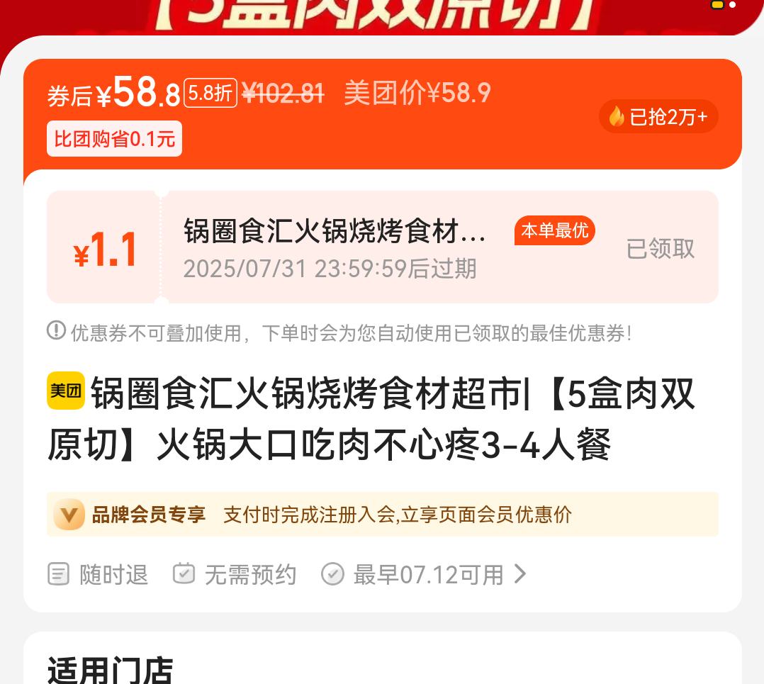 锅圈食汇 【5盒肉双原切】火锅大口吃肉不心疼3-4人餐