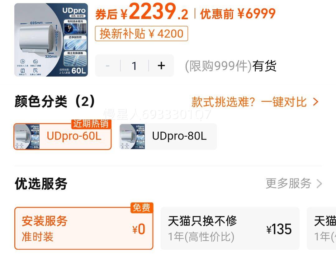 美的活水UDpro电热水器扁桶家用卫生间洗澡一级60L以旧换新补贴 UDpro-60L 2239