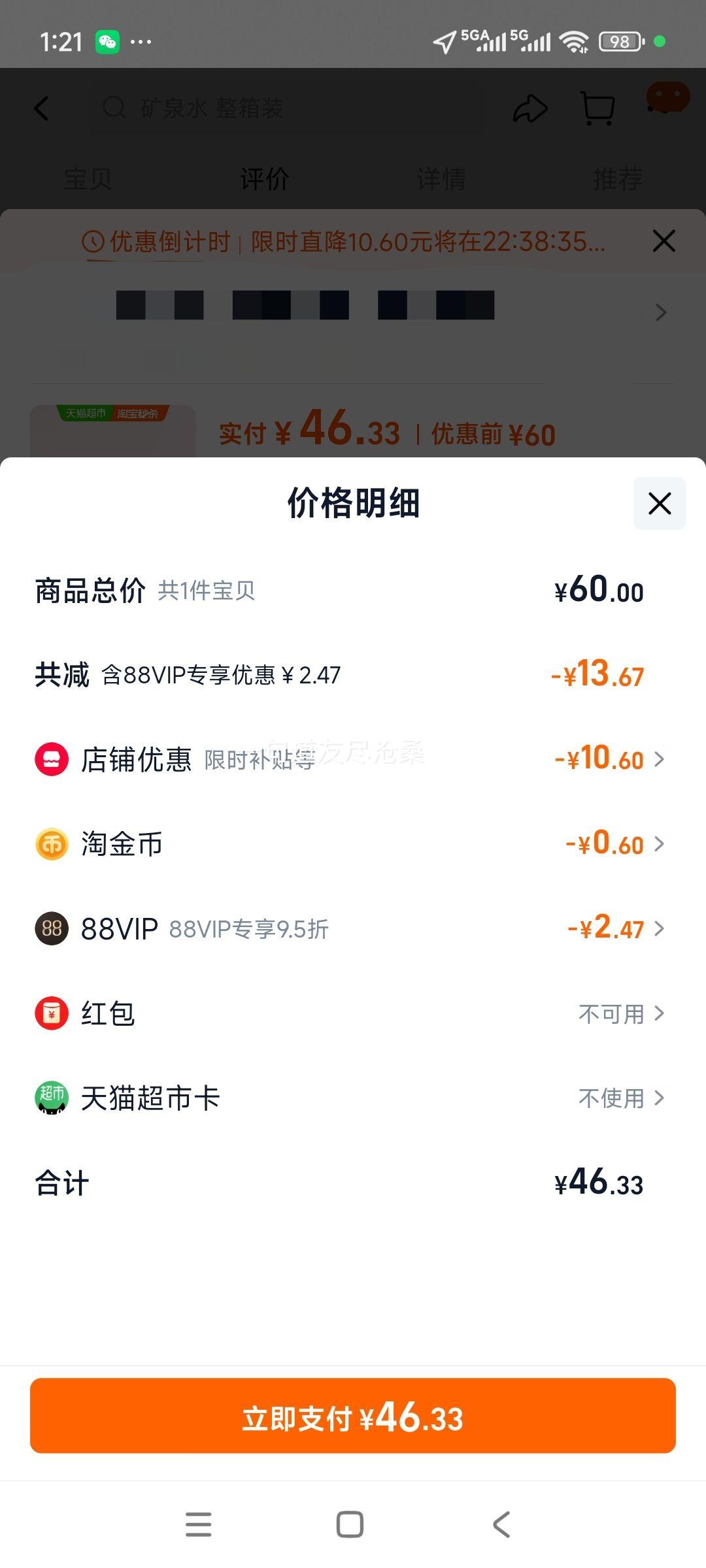 46.33元+0.6元淘金币