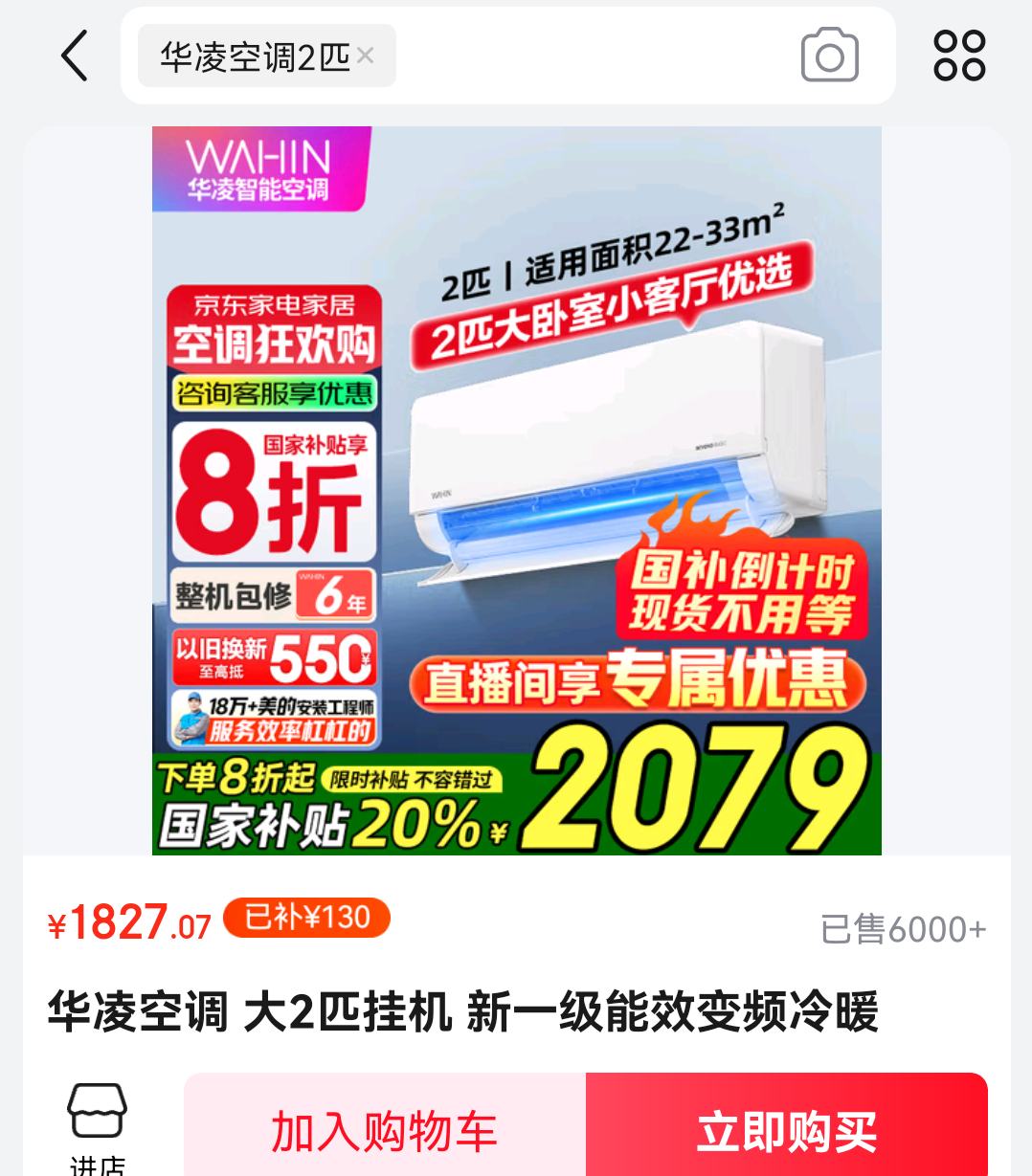 政府补贴:华凌 KFR-50GW/N8HL1 新一级能效 壁挂式空调 2匹 1827.07元